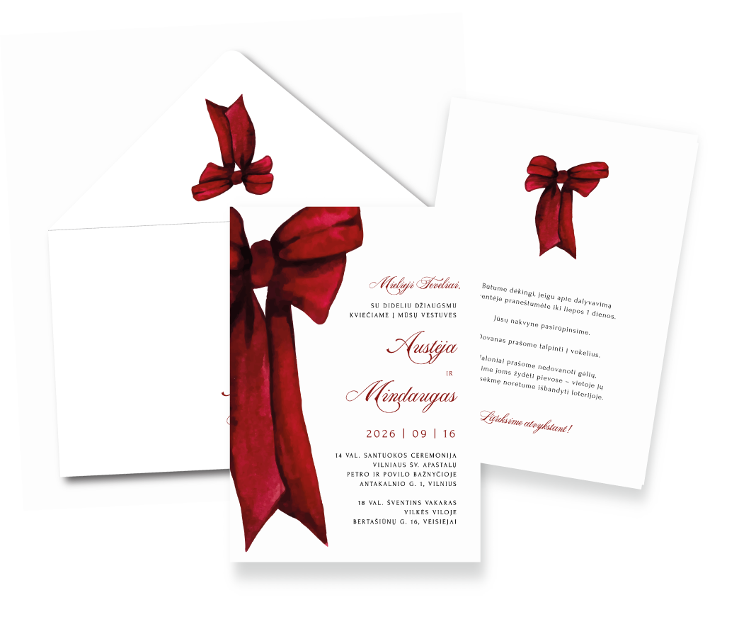 Prašome atkreipti dėmesį, kad kvietimai ir vokai užsakinėjami atskirai.